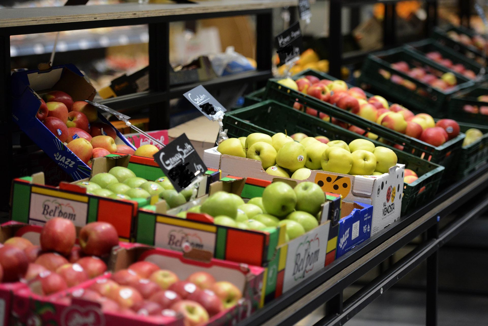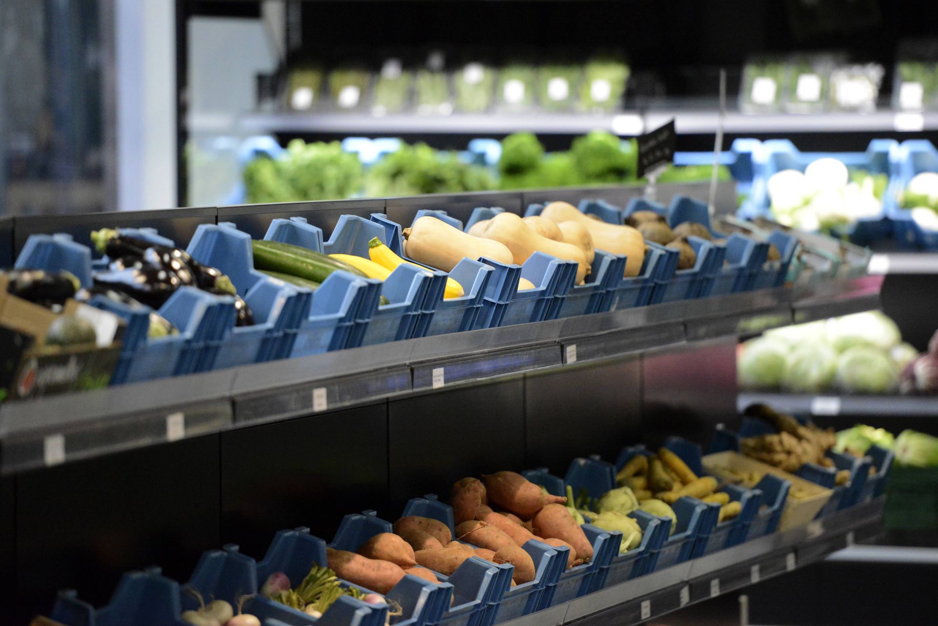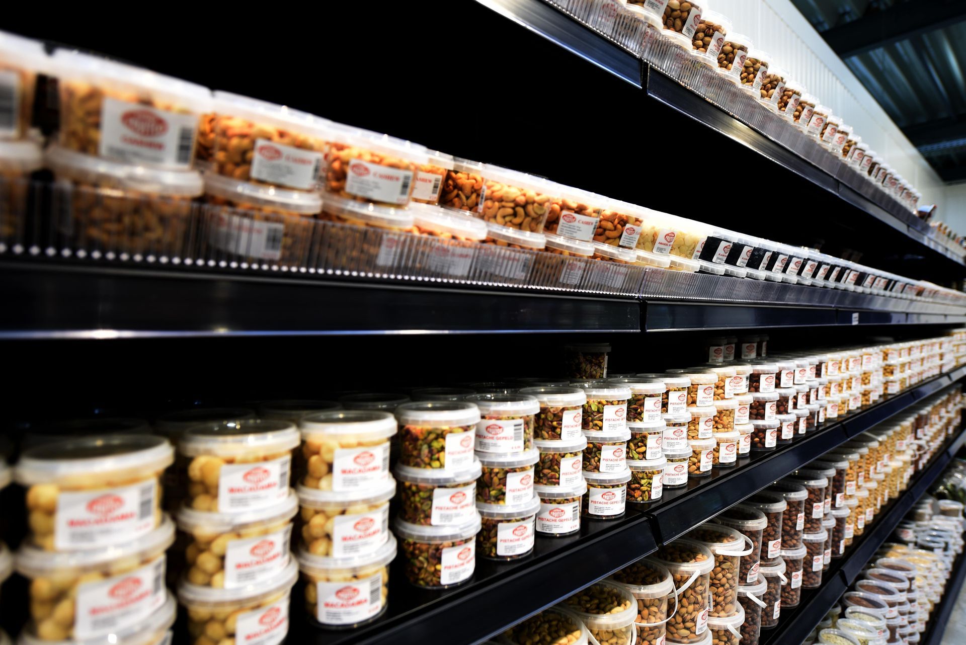 Een zeer uitgebreid assortiment van groenten en fruit, exotische fruit, nootjes,